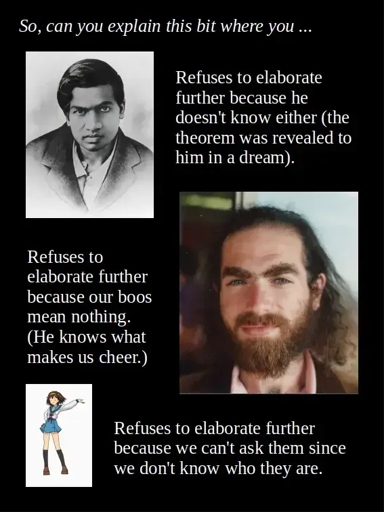 I admire that attitude, I really do. Perelman especially, taking IDGAF to a whole other level. Posting proof anonymously on 4chan or seeing proof in a blood soaked dream is pretty cool too.