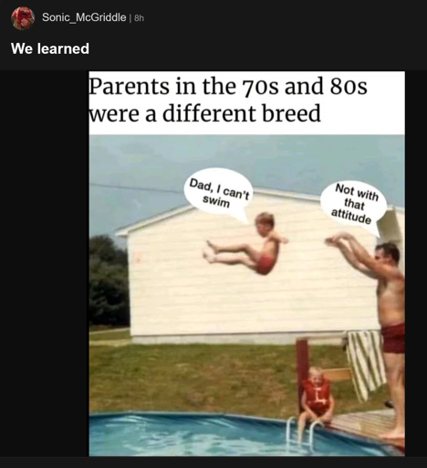 Watching my kids take swim lessons I am super impressed how they KNOW how to teach. They have a slow steady progression of techniques that build on eachother. Same with gymnastics. Build strength, technique and confidence. No need to terrify kids.