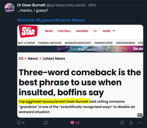 “Egghead neuroscientist grandma” feels like it would disarm me.