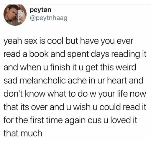 Same with good shows, movies, games, etc. I kinda feel hollow after.
