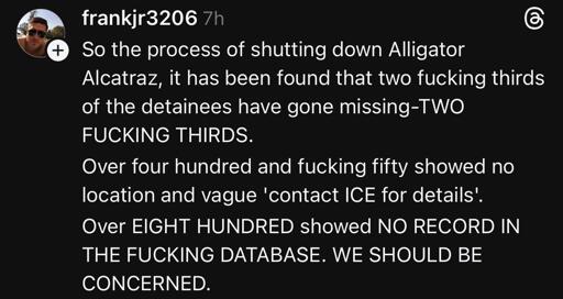 wanna bet some of the “alligator” detainees went to some of the for-profit prison in some of the red states.