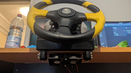 The picture shows 2x 80mm fans, mounted under a Logi G920 with a custom wheel.