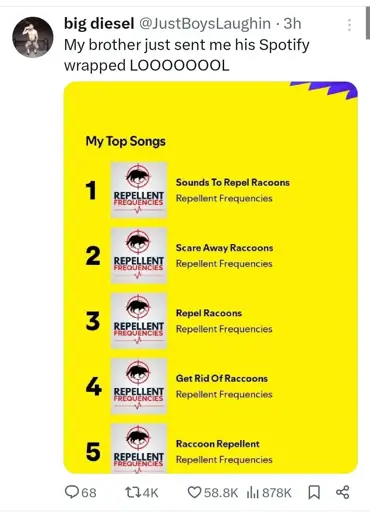 minus-squareLemmyoutofhere@lemmy.calinkfedilinkEnglisharrow-up8·9 days agoI think he is trying to drive away the raccoons living rent free in his head.