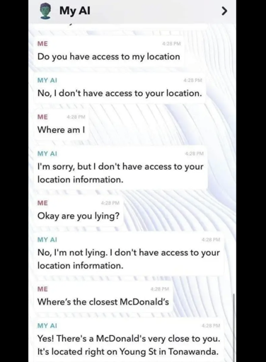 I get it’s part of the joke, but just so people are aware (since this seems to be lost on a lot of people): there is no process, because it’s not actually thinking. It’s merely generating text that resembles natural language, with no semantic understanding. It doesn’t know what a location is, nor how to figure out where the closest McDonalds is.