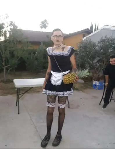 It’s Hitler from Lil’ Nicky, an Adam Sandler movie from the late 90’s. He’s forced to wear a French maid outfit and have a pineapple shoved up his ass all the time.