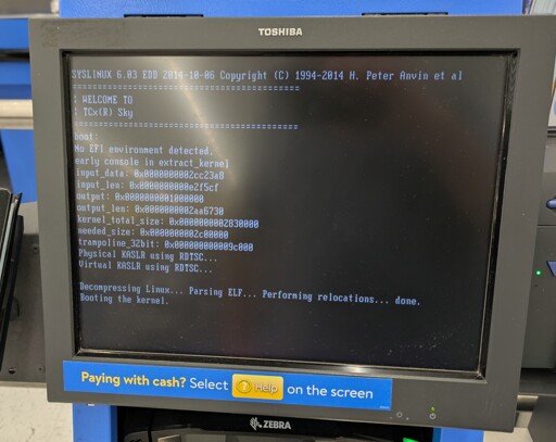cm0002@lemmings.world to Linux@programming.dev · 16 days agothe self checkout machines at Walmart need a reboot. syslinux 6.03lemmy.mlimagemessage-square6fedilinkarrow-up191file-text