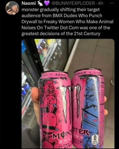 monster be viral marketing to trans women super hard the past decade and i’m tired of pretending it’s “just a meme”. this is a fucking ad.