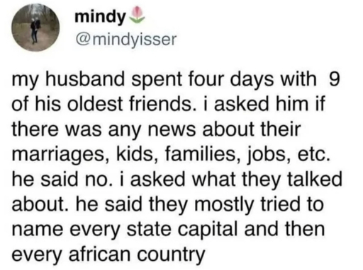 And the riffs are the funniest thing in the world, but require a decade minimum of friend-lore to comprehend