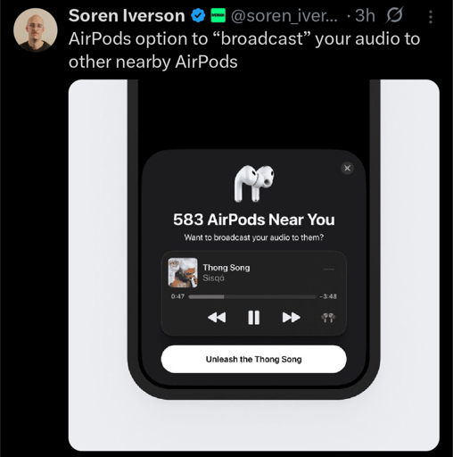 The reason it exists primarily is so that music venues and museums and such can provide broadcast audio for accessibility and just in general without requiring people to use their janky headsets from the 80s. Once it exists and is actually in the hardware for the Bluetooth chips, the work to plug together a UI for it is relatively small for what looks like a big feature.