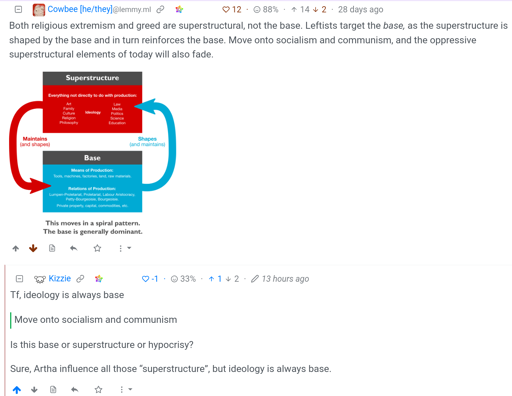 Sure, Artha influence all those “superstructure”, but ideology is always base.