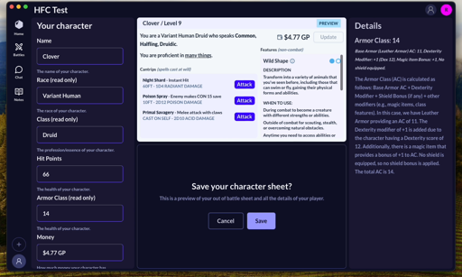 On this missing skills side, in this preview we are indeed hiding the skills and proficiencies but we do show those once you save the character (you can see in our screen shot on the website). However, what I’m hearing from that feedback is that you would find it more valuable to also include that in this preview as well?